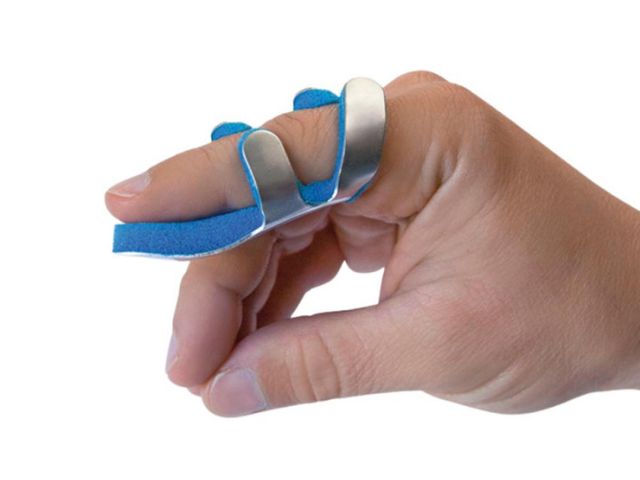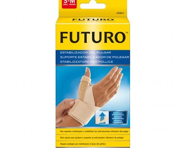 Tala forrada para imobilização do polegar, indicada em tendinites, sequelas dolorosas e inflamações, instabilidade ou irritação na zona das articulações trapéziometacarpianas e lesões desportivas.