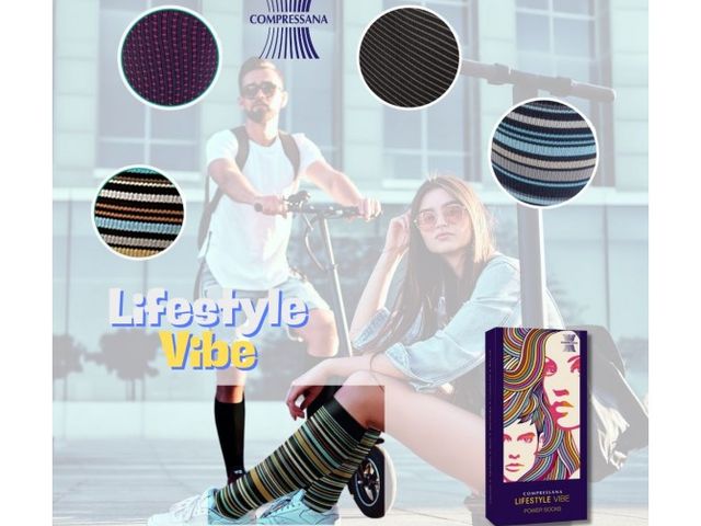 As meias COMPRESSANA LIFESTYLE VIBE alia o conforto a um design moderno! Para pessoas que procuram uma meia de descanso elegante, com um estilo moderno e inigualável, com o topo do conforto.